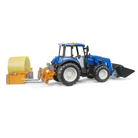 Bruder New Holland T5.120 + Chargeur frontal, bennes, fourches + balle ronde – Échelle 1:16