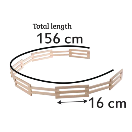 Hiermee kun je in een mum van tijd een veilige en afgebakende ruimte creëren voor je boerderijdieren of andere speelfiguren. Dankzij het uitklapbare ontwerp kun je het hek gemakkelijk in verschillende vormen plaatsen en de natuurlijke houtafwerking geeft het een realistische boerderij-uitstraling. Het is licht van gewicht en gemakkelijk te hanteren en past perfect bij boerderijsetjes op schaal 1:24 voor urenlang fantasierijk speelplezier.